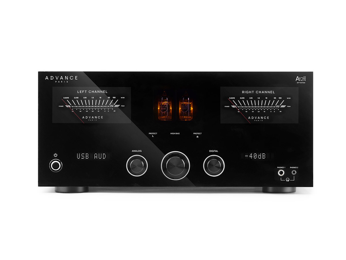 The A12 APEX is a hybrid integrated amplifier, combining the warmth of tubes for preamplification and the power of transistors for amplification. This subtle marriage offers great musicality, exceptional dynamics and faithful, lively sound reproduction.