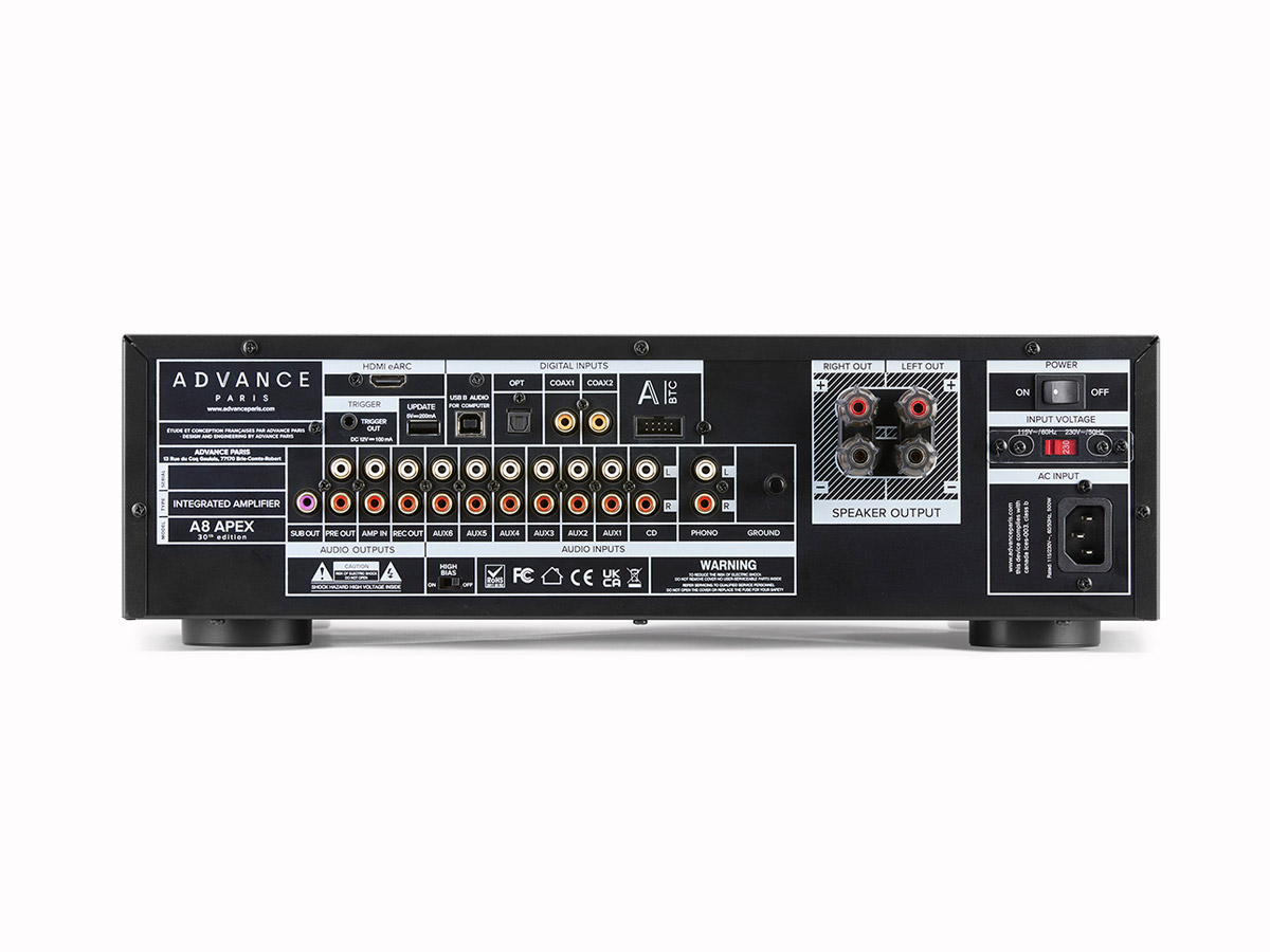 The A8 APEX is compatible with vinyl turntables with MM cells (the most classic). It incorporates an RIAA phono preamplifier, so you can enjoy the full musicality of your vinyl records.