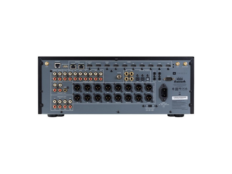 A full suite of digital and analog connectivity is included along DANTE digital audio networking and HDMI 2.1 (8K Ultra HD) AV switching with support for Dolby Vision and HDR10+ dynamic video, plus IMAX Enhanced certification. Network and Bluetooth streaming are included with Google Chromecast built-in, Apple Airplay 2, Spotify Connect and Tidal Connect, plus it is Roon Ready with Hi-Res and MQA support. Full external control allows for complete and easy system integration.