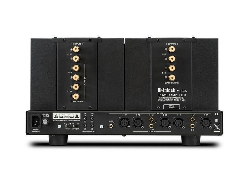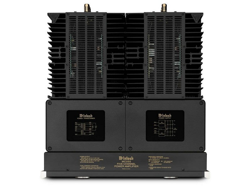 While the MC255 has received many upgrades, it also comes with hallmark McIntosh technologies such as Power Guard® that prevents potential speaker damage caused by clipping and over-driving of the amplifier, and Sentry Monitor™ that protects against short-circuits by disengaging the output stage should the current ever exceed safe operating levels (it then resets automatically when operating conditions return to normal). Both balanced and unbalanced inputs are included to connect your home theater processor to the MC255 home theater amplifier.