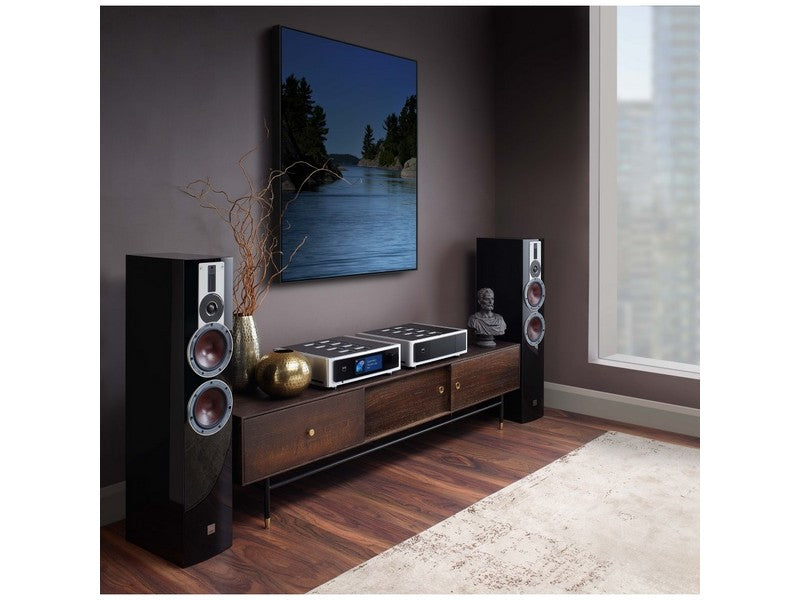 The M23 employs Eigentakt™ class-D amplifier modules manufactured by NAD under license from Denmark’s Purifi Audio. Purifi’s load-invariant design provides wide, flat frequency response, even into challenging loudspeaker loads. Noise, harmonic distortion, and IM distortion are virtually unmeasurable at all frequencies and output levels. Another benefit of the Eigentakt™ design is extremely low output impedance and correspondingly high damping factor, for iron-clad control of the loudspeaker output. NAD combines the Eigentakt™ design with our own sophisticated switched-mode power supply, which can provide additional reserves of current when needed. Amazingly powerful and transparent, the M23 can deliver 2x260W of peak power into 8 ohms and 2x520W into 4 ohms.