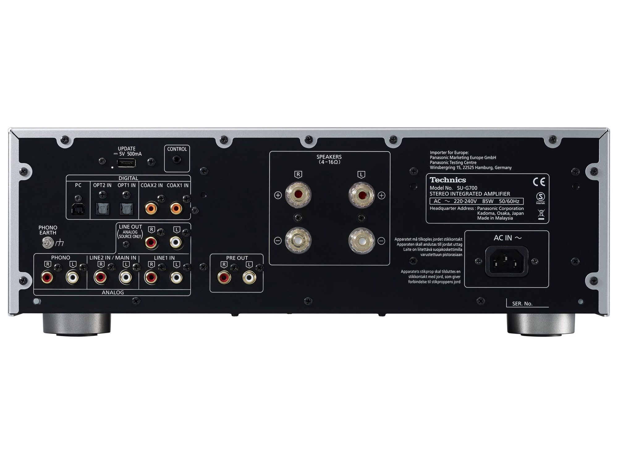- High-grade Components: Technics exclusive block capacitors, brass speaker terminals, and large ground terminal