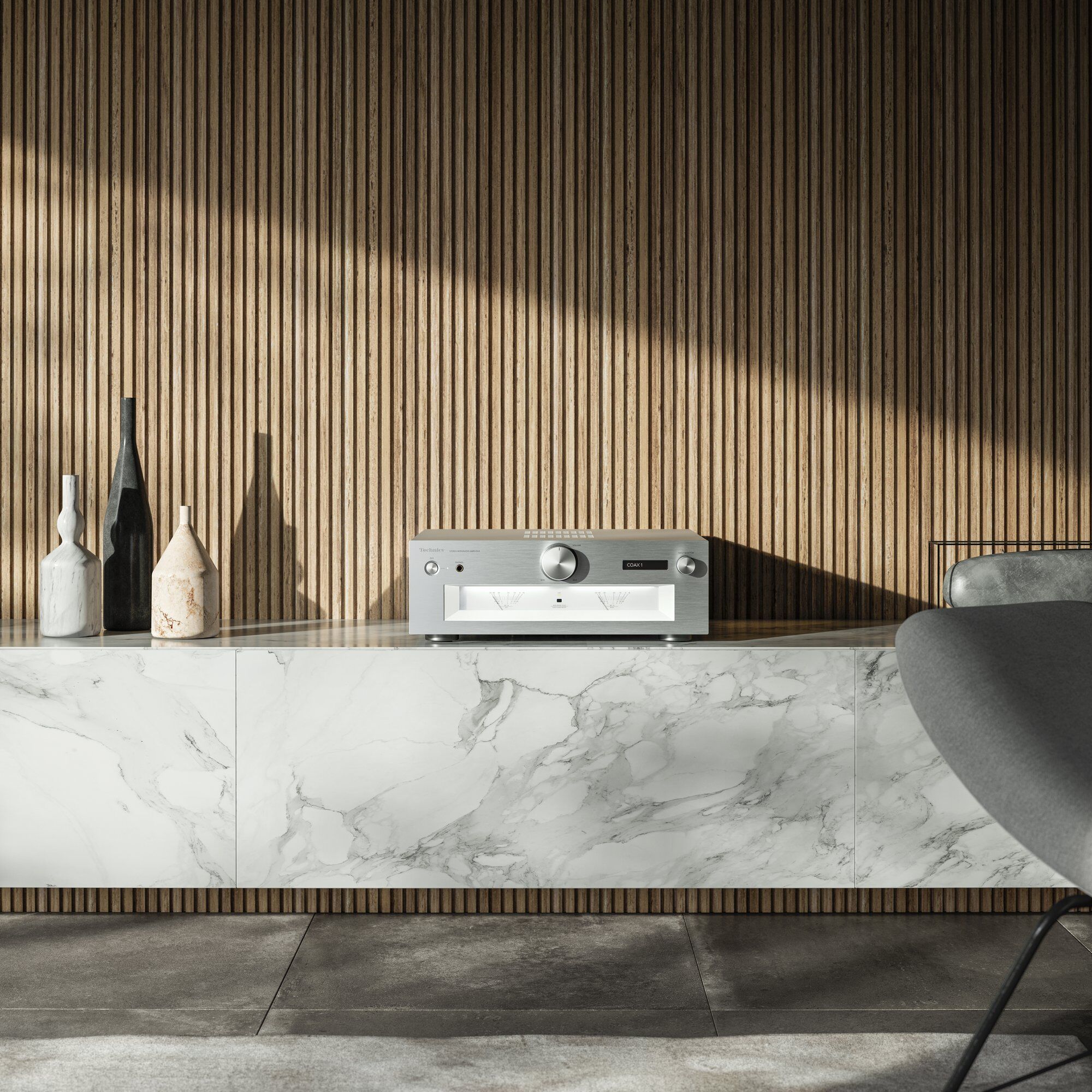 The SU-G700M2 features meticulous construction with partitioned circuit blocks to eliminate interference, a 7mm-thick aluminium front panel, and Technics’ exclusive block electrolytic capacitors optimised through scrupulous tuning. This robust design ensures the amplifier delivers consistent, audiophile-grade performance for both analogue and high-resolution digital sources.