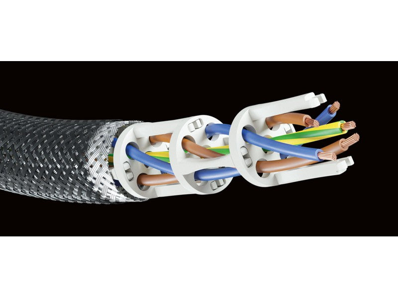 Thanks to these technical refinements, the AC-1204 AIR mains cables is able to supply the components with power even in extremely dynamic passages, and therefore can unleash the full potential of your electronics. As soon as electrical energy is transported, electromagnetic interference fields are inevitably generated. To avoid this, the AIR cables are shielded with a dense braid of tinned copper. This especially protects the adjacent audio components and cables from radiating interference fields caused by the high current peaks in the power cable. The many special features of the AIR mains cables therefore counteract all undesirable effects extremely well and make them what they are: outstanding energy pipelines for perfect audiophile sounds.