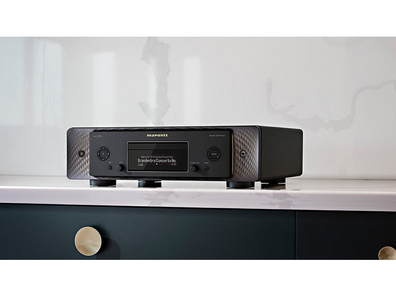 The most musical digital source player for CDs, SACDs, and high-resolution files, plus multiple streaming services. Delivered through Marantz Musical Mastering processing and a crystal-clear pre-amplifier.