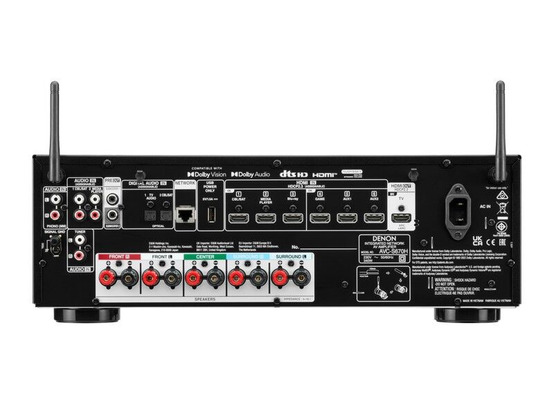Denon AVC-S670H 5.2 Channel 8K AV Receiver with HEOS® Built-in delivers immersive, high-quality sound and visuals with support for 8K resolution, advanced room correction, and seamless streaming. Featuring Dolby Atmos, DTS:X, and HEOS® for multi-room audio, this receiver offers a comprehensive home theater experience with easy setup and intuitive control.
