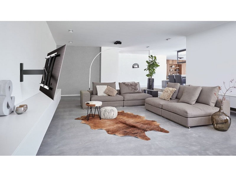 Mount your TV on the wall with an extra-thin THIN full-motion TV bracket for the best view of your TV from anywhere in the room. You simply turn the TV towards you and you’ll never again have to worry about annoying reflections. With the THIN full-motion wall mount, you can turn and tilt your TV to any desired position.