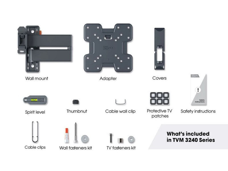 Installing your COMFORT Full-Motion+ TV wall mount is easy. Vogel’s also gives you a helping hand. A drilling template, screws, Fischer® DuoPower plugs, cable ties and spirit level are included in the packaging. Marking out the first drill hole is easy with our free DrillRightâ„¢ AR App and all installation instructions are concisely described in the Quick Installation Guide. The detailed manual and installation video are available online.