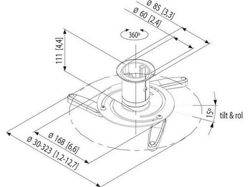 The VPC 545 projector ceiling mount fits virtually all projectors weighing up to 10 kg. It has a tilt, turn and roll function.