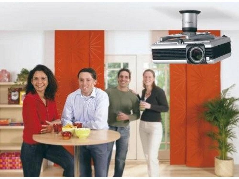 The metal arms are adjustable and fit virtually all projectors equipped with screw connection. Using the handy click in/out system, it is easy to attach or remove the projector, for instance for service purposes. Whether it be for presentations, or for watching movies, this universal projector mount will come in very useful. It avoids the necessity of finding a table or temporary support for the projector.