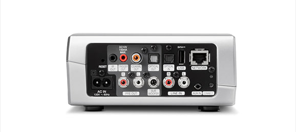 The versatile HEOS Link features built-in dual band “N” wireless technology for quick and easy connection to your home network. In addition to the built-in wireless function, the HEOS Link is also equipped with an RJ-45 Ethernet port for hard wire connection to your LAN. The USB port lets you connect a portable USB drive, and you can also use the USB connection to charge your portable device.