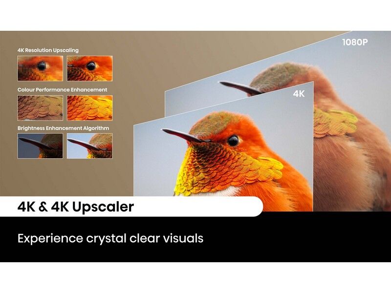 Experience what you’re watching in stunning 2000 lumens of brightness, bringing out every detail—from the deepest shadows to the brightest highlights. Your picture becomes even more captivating with enhanced vibrancy and clarity, delivering an immersive, vivid viewing experience.
