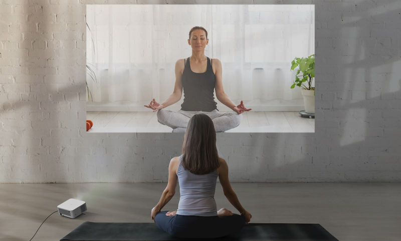 Say goodbye to small screens and immerse yourself in yoga at home with OMA. Its vibrant display brings the instructor to life, making it feel like you have a 1:1 session. Follow along easily and maintain proper form with the larger screen. OMA goes beyond yoga, projecting meditation videos and creating a serene ambiance. Elevate your home practice with OMA and have a personal yoga instructor in your living room. Namaste.