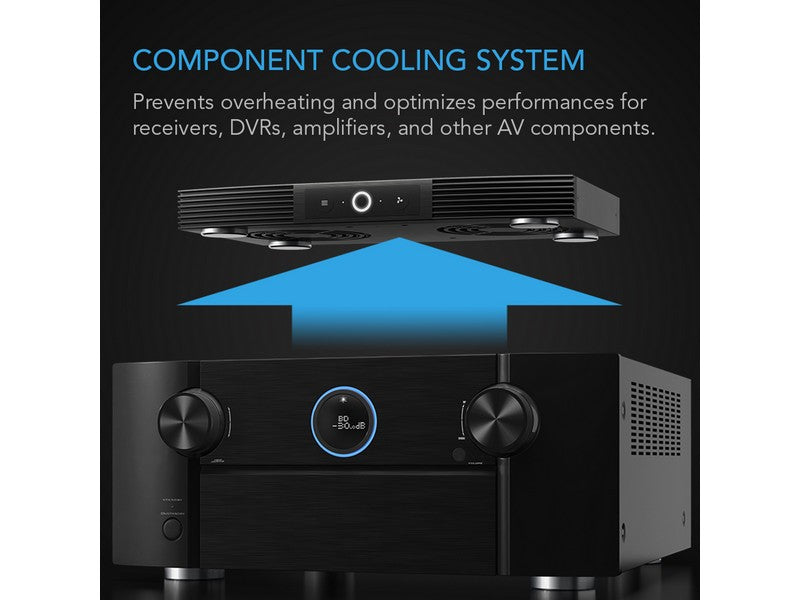 - A quiet fan system designed for cooling receivers, routers, game consoles, and other AV components.