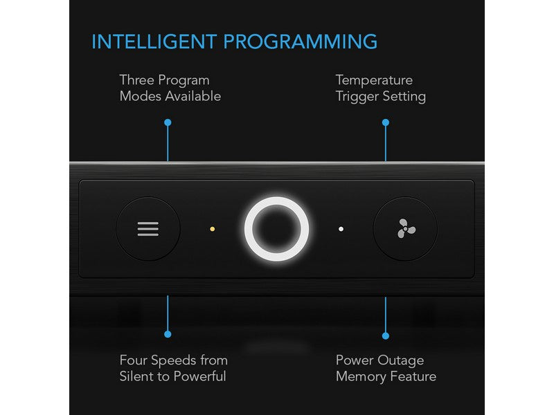 There are three programming settings available which includes two temperature trigger modes. The fans can also be set to run continuously or be turned off. Four fan speeds are available for each active mode and will determine the speed at which the fans run when they are triggered. This ensures optimal airflow and noise levels for your application.