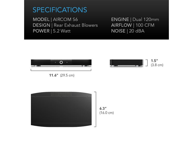 AIRCOM S6 Receiver AV Component Cooling Blower System Rear Exhaust 12″