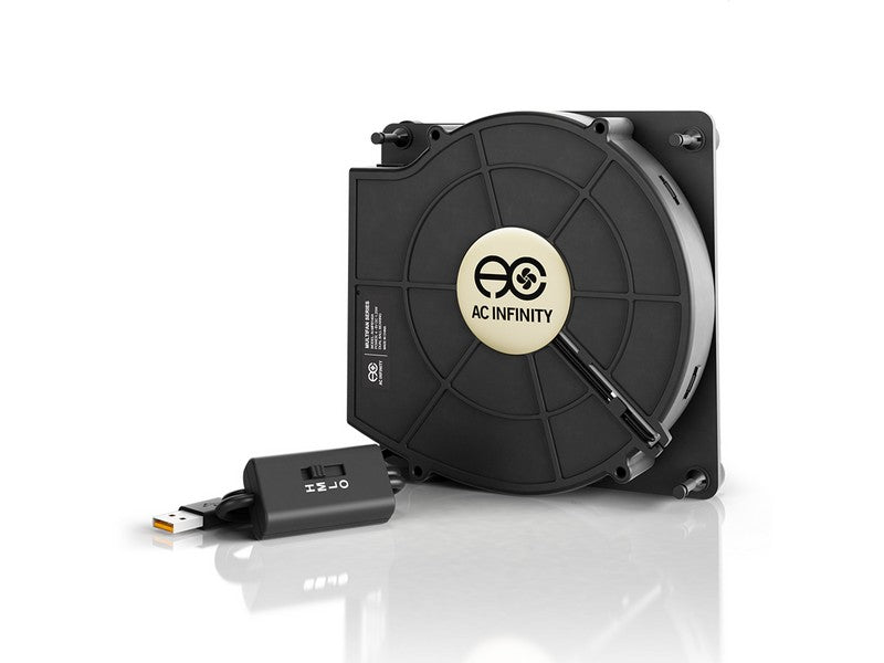 The MULTIFAN S2 quiet USB blower can be placed on top of various electronics and components. Features a multi-speed controller with three speed settings and off switch located on the cord. Six foot power cord contains a 5V DC USB plug that can power the blower through any USB port. Includes four silicone fan mounts that are attached to the bottom of the blower to absorb vibrations and to reduce noise.