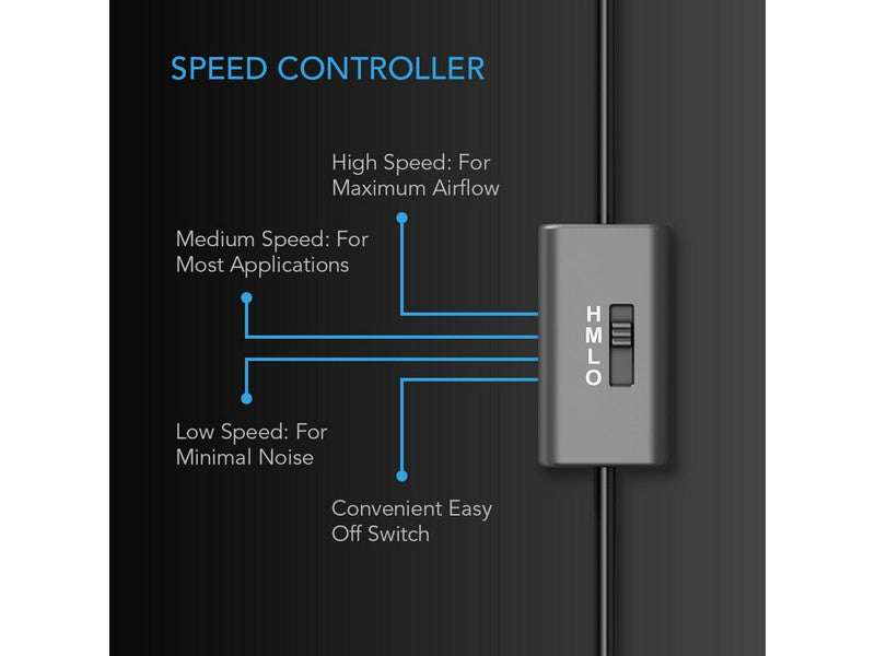 - Features a multi-speed controller to set the fan’s speed to optimal noise and airflow levels.