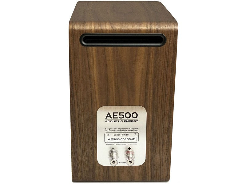 Finished in a choice of Piano Gloss Black, Piano Gloss White or American Walnut wood veneer finishes, the AE500 will easily integrate within any home décor placed on speaker stands or bookshelves.