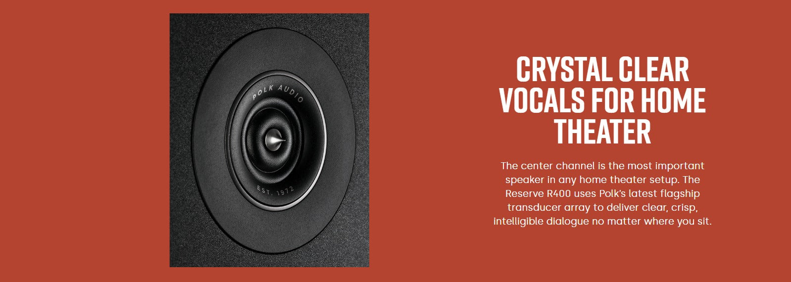 The center channel is the most important speaker in any home theater setup. The Reserve R400 uses Polk’s latest flagship transducer array to deliver clear, crisp, intelligible dialogue no matter where you sit.