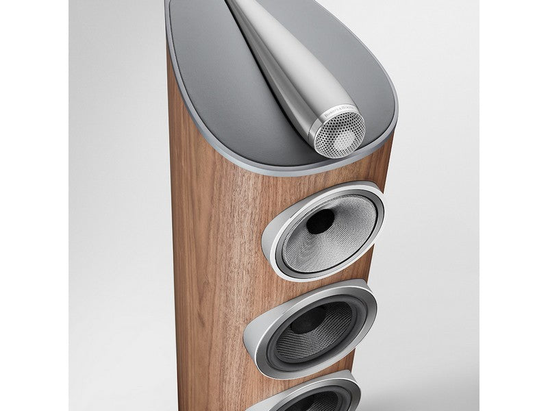 Every model in the range adopts a revised version of the iconic Solid Body Tweeter-on-Top housing, with a new, elongated tube-loading system to produce an even more open sound for high frequencies. This supremely stiff enclosure deftly resists unwanted resonance and is an exceptional acoustic form – especially when combined with a new two-point decoupling system that isolates it from the rest of the loudspeaker more effectively than ever. As before, the Solid Body Tweeter is milled from a single solid block of aluminium and now, it uses an anodised finish, either dark or light depending on the cabinet colour, to celebrate that fact.
