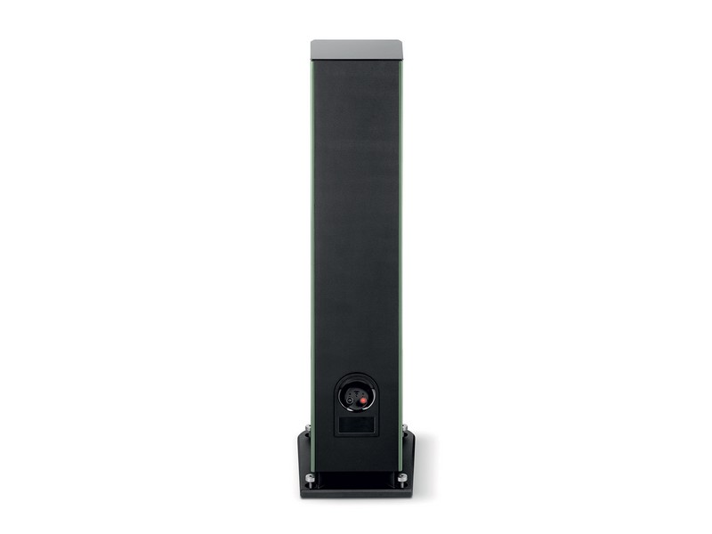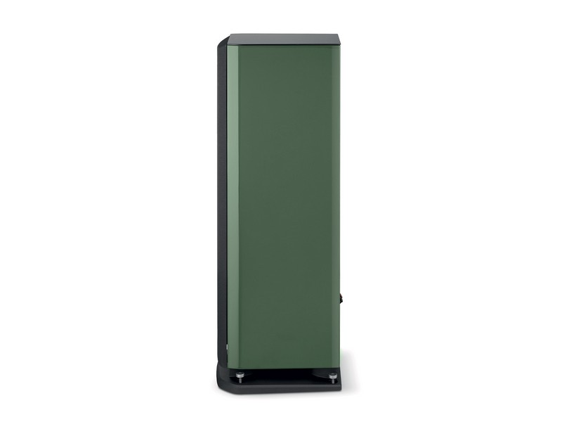 Sober design and noble materials characterize the loudspeaker. Its Black High Gloss, Prime Walnut and Moss Green High Gloss finishes, and leather-effect front panel bring character and elegance to any living space.