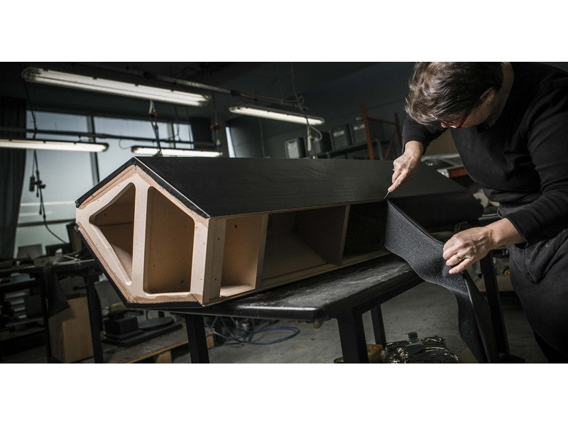 The tilt of the cabinet, its five non-parallel walls structure and the sides applied on the enclosure, increases structural strength of this loudspeaker system.