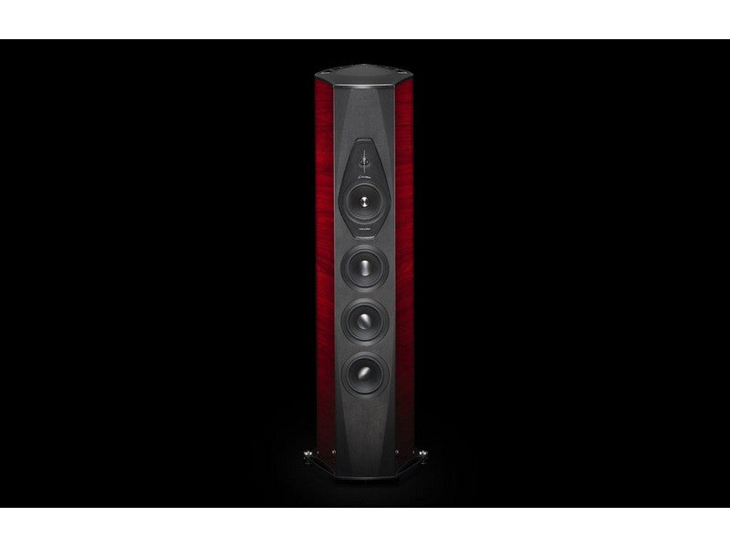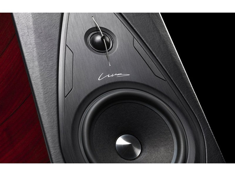 Sonus faber “Arrow Point” DAD (Damped Apex Dome, synthesis of the classic dome and ring transducer) H28 XTR-04. A Sonus faber designed 28 mm moving coil driver, with Sonus faber’s vibration optimized mechanical interface. The ultra dynamic linearity is given by the new Neodymium motor system. Implemented with a natural wood acoustic labyrinth rear chamber, a mechanical anti-resonator designed for this application.