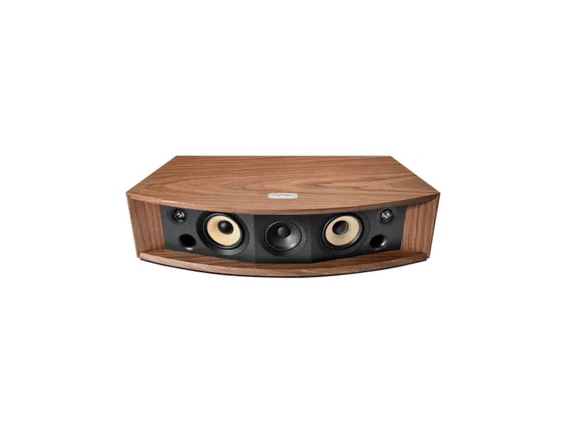 - Enclosure: Front-ported tabletop in satin walnut furniture-grade wood veneer