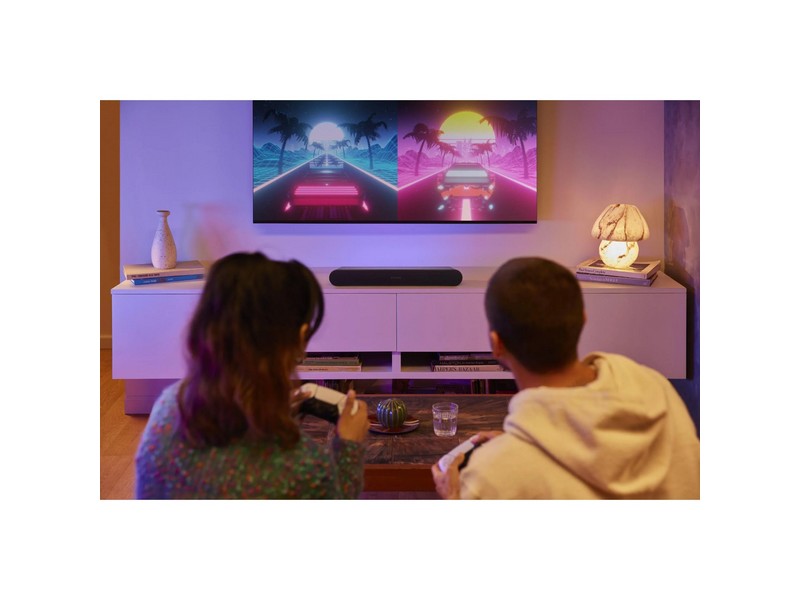 The compact and understated design seamlessly blends into your home and won’t pull focus from what’s happening on screen.