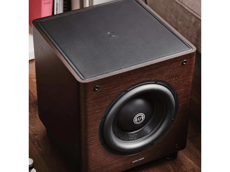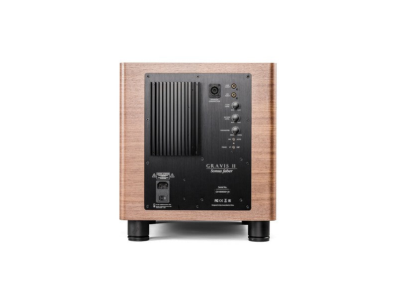 Both Sonus faber Gravis I & II use quality stamped steel-frame speaker units: Gravis I features a 8” Ultra Long Throw down-firing speaker unit along with a high current 150W Class AB amplifier; Gravis II uses a 10” Ultra Long Throw down-firing speaker unit and a 10” aluminum along with a high current 400W Class AB amplifier, alloy diaphragm passive infra-bass radiator.