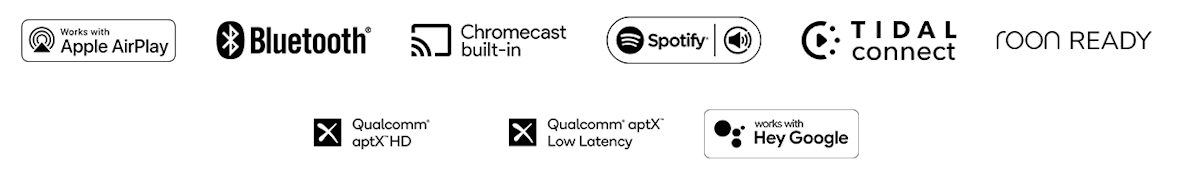 - Built-in casting: Spotify Connect, TIDAL Connect, Apple AirPlay 2, Bluetooth, Chromecast, Roon Ready