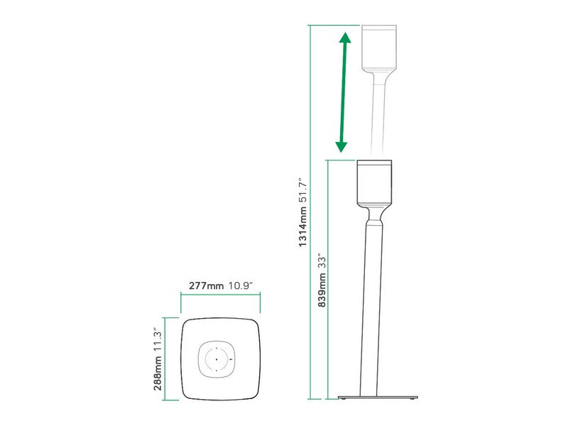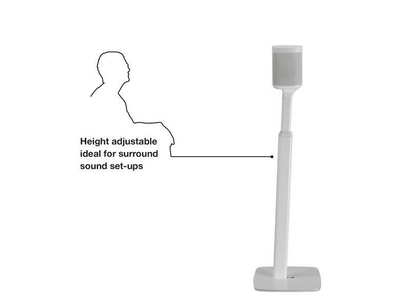 The Flexson Adjustable Floor Stands for Sonos One, One SL and Play:1 can hold either speaker at a range of heights, allowing them to adapt to a range of potential Sonos set-ups.