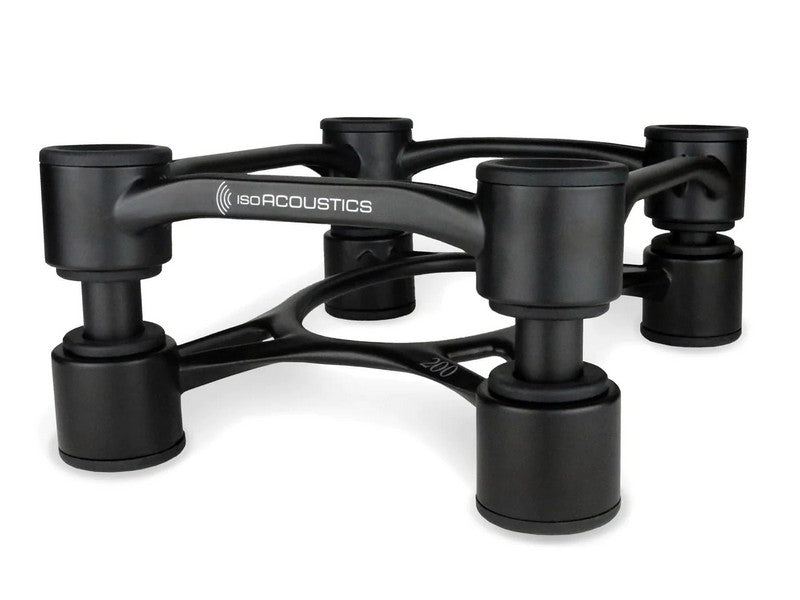 Sculpted aluminum acoustic isolation stands designed especially for high end hi-fi bookshelf, desktop speakers, studio monitors, large speakers on floor stands, as well as under floor-standing speakers. The Aperta 200’s solid aluminum frame and isolator construction has an overall size of 7.8”x10” (200x254mm) and is designed to support large speakers weighing up to 75 lbs.
