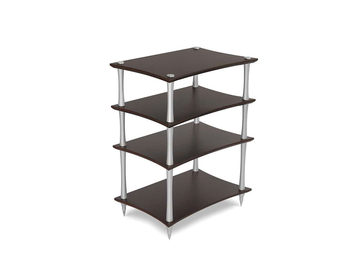 Shelves are made from solid bamboo which is available in natural or coloured. Cherry, black, dark and natural Adjustable spiked feet allow efficient floor de-coupling