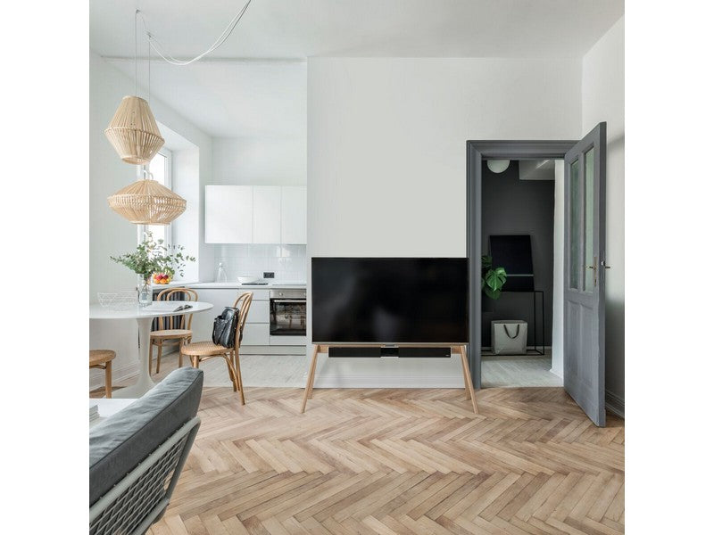 The NEXT OP2 is a modern, free-standing floor stand for your TV. Scandinavian design characterized by functional simplicity. Without losing its beautiful appearance, a sound bar can easily be added to the NEXT OP2 using the additional NEXT OPSOUND accessory (sold separately). The NEXT OP2 is suitable for TVs ranging from 50″ to 77″ and up to 50 kg (110 lbs).