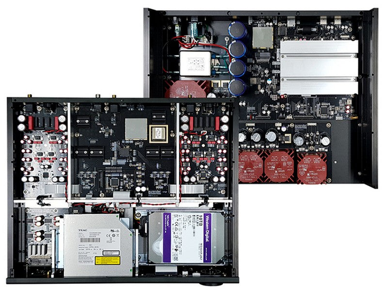 Full-linear power supply and extensive shielding prevent noise from being delivered to sensitive DACs for the best sound reproduction. Four discrete toroidal transformers power the server system, digital output and dual DACs respectively.