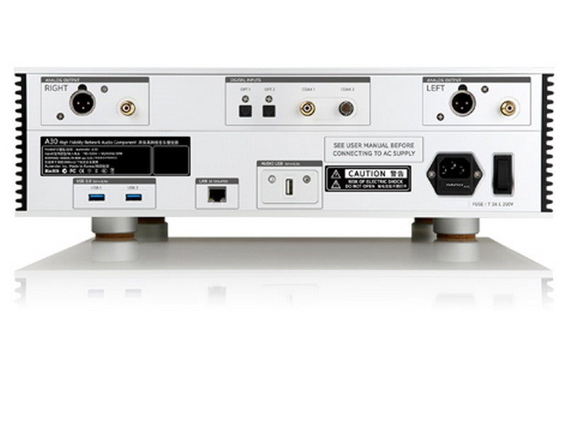 The dedicated USB Audio Class 2.0 output is designed to deliver an exceptionally transparent audio signal free of noise, and is shielded from outside electronic interference. It can be used, for example, to allow the A30 to source a different DAC for another system.