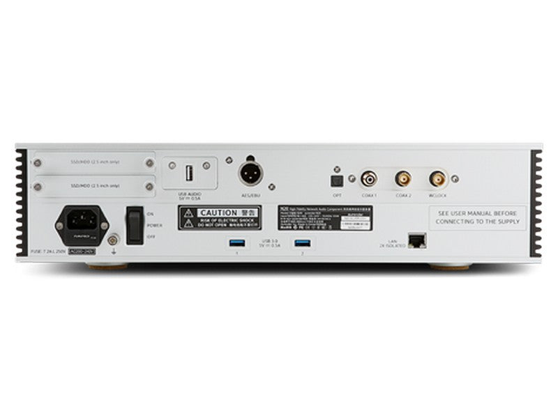 The N20 provides unparalleled flexibility in terms of the type and capacity of drive that can be fitted. Each of the two trays on the rear panel can be fitted with a 1TB/2TB/4TB or 5TB HDD or a 1TB/2TB/4TB or 8TB SSD. You can choose to install one or both to accommodate your current capacity and/or future expansion of your digital files. If installed, these internal hard drives provide storage for your music library and an internal 500GB solid-state drive is used to cache music for playback. If a selected song or album is already cached to the solid-state drive, the storage drive remains idle. This minimizes the system’s overhead resources in se, and wear and tear on the hard drive. Additionally, by caching songs to the solid-state drive for playback, electrical and acoustic noise resulting from spinning disks, moving heads and motors is completely eliminated.