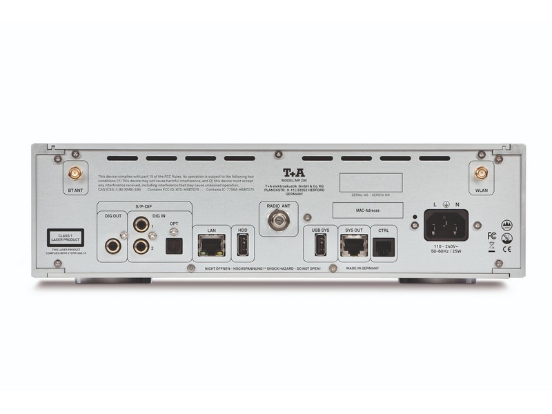 Although the MP 200 works with any D/A converter, its overall design was developed to provide a special synergy when used with the Series 200 converters – the DAC 200 and HA 200: the T+A SYS Link exchanges control data, routes audio signals along the optimum path, and allows the MP 200 to become the command centre of a complete system when the T+A MusicNavigator app is used.