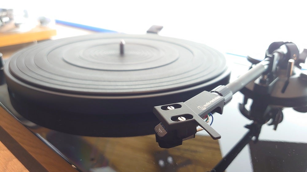 - AT-HS4 universal ½”-mount headshell and AT-VM95E Dual Moving Magnet phono cartridge (black) with 0.3 x 0.7 mil elliptical stylus
