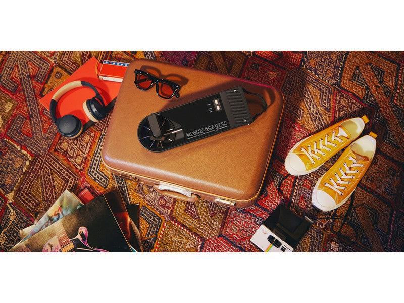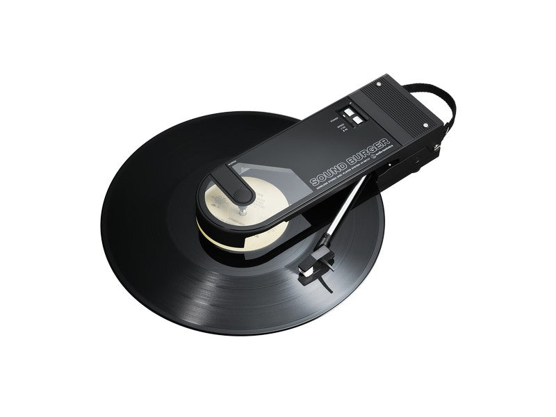 The Sound Burger offers high-quality sound reproduction with a belt-drive system that plays 33-1/3 and 45 RPM records. To achieve both portability and stability, the tonearm employs a dynamic balance system in which stylus pressure is applied via a spring. In addition, a high-precision DC motor maintains stable rotation. This unique turntable features a die-cast aluminium alloy platter with damping design and a replaceable ATN3600L stylus (sold separately). The Sound Burger also comes with an audio cable for those who prefer an analogue, wired listening experience.
