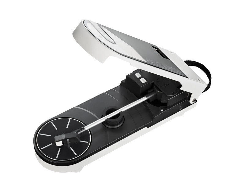 The Sound Burger offers high-quality sound reproduction with a belt-drive system that plays 33-1/3 and 45 RPM records. To achieve both portability and stability, the tonearm employs a dynamic balance system in which stylus pressure is applied via a spring. In addition, a high-precision DC motor maintains stable rotation. This unique turntable features a die-cast aluminium alloy platter with damping design and a replaceable ATN3600L stylus (sold separately). The Sound Burger also comes with an audio cable for those who prefer an analogue, wired listening experience.