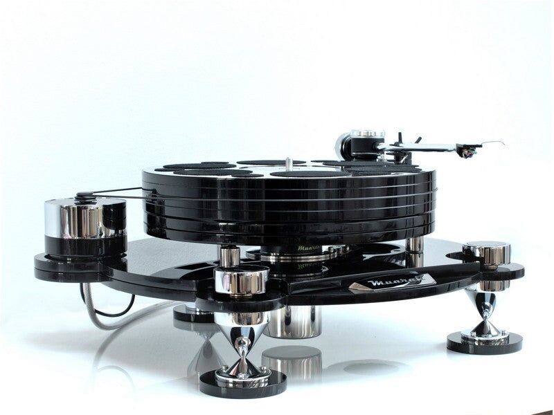 Muarah MT-1 EVO Turntable is a Muarah flagship construction. Thanks to carefully selected materials for sub-chassis and platter the sound is free from resonances and vibrations. Platter is a hybrid acrylic+steel combination. It sonically outperforms any solid design. MT1 EVO inherits all technical features from it’s predecessor MT1 but additionally introduces new details of external appearance: record mat rosette as integral part of the platter and modified leveling knobs with acrylic inserts. As a standard MT1 EVO is equipped with high-end MY19 tonearm and phono cable. It places MT1 EVO in exclusive category of the best turntables on the market. It is not only perfect mechanism; it’s a piece of art!