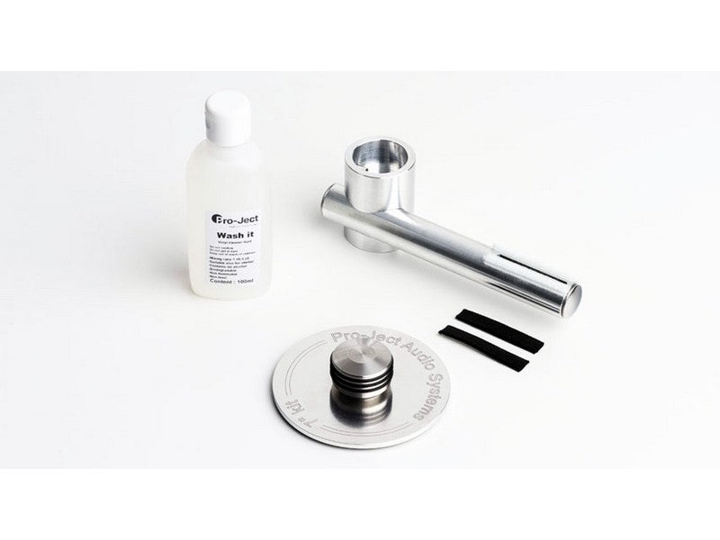 Also part of the scope of delivery is a cleaning solution, namely the concentrate Pro-Ject Wash-it in a 100 ml bottle.