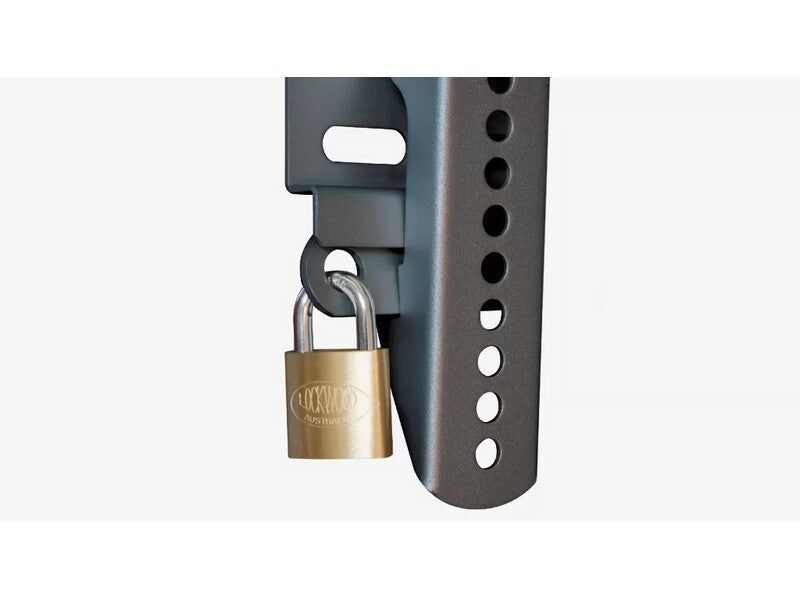 A unique securing method is employed to ensure the screen cannot be removed by unauthorised persons. Once the screen is positioned on the wall plate a discrete locking rod slides neatly between the mounting mounts and the wall plate. Once in place a padlock (not included) can be fitted to the end of the locking rod making removal of the screen virtually impossible.