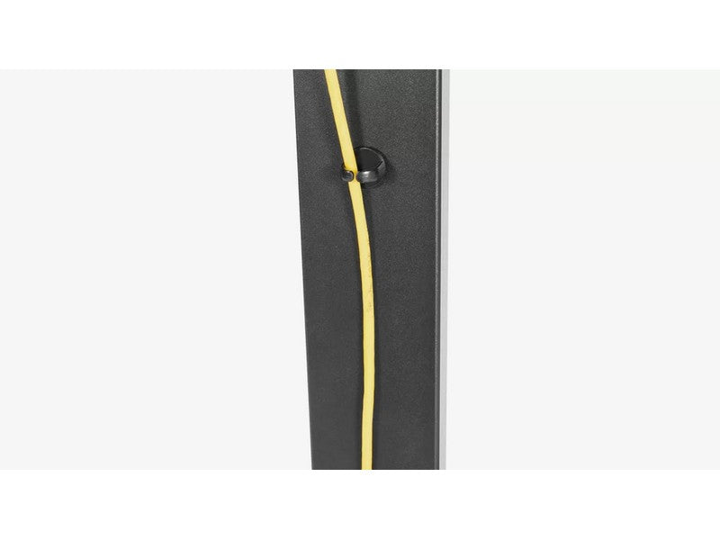 Two height adjustable vertical mounting rails, mounting plate, sturdy central column and tempered glass base – with mounting hardware and assembly instructions.