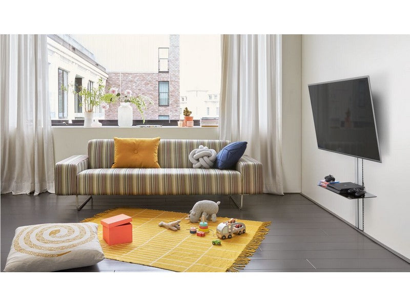 The advantage of Vogel’s AV Multi Support NEXT 7825 is its broad shelves. These give you a sturdy piece of furniture to hold your valuable equipment. Perfect for a BluRay player, gaming equipment and console, centre speaker, etc. It looks classy with its smoked black glass. You can use more than one support to stack up all your equipment.